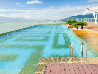 Tọa lạc trên tầng 29, bể bơi vô cực dát vàng 24K với thiết kế đặc biệt lấy cảm hứng từ sự vô tận của trời biển hứa hẹn sẽ đem lại trải nghiệm mới lạ dành cho bạn. Quý khách có thể đắm mình trong làn nước mát lạnh, ngắm toàn cảnh thành phố Đà Nẵng xinh đẹp, tắm nắng hoặc đắm chìm trong cảnh hoàng hôn rực rỡ trong khi thưởng thức những món ăn nhẹ và thức uống hấp dẫn tại quầy Bar của khách sạn Danang Golden Bay ( chỉ dành cho khách lưu trú tại khách sạn).